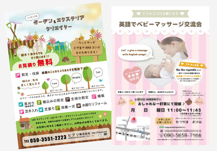 チラシやパンフレット、DM、名刺などの紙媒体デザインを制作